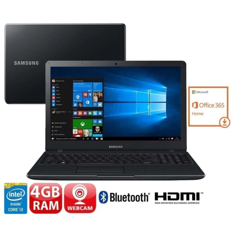 Notebook Samsung Essentials E34 NP300E5K-KF2BR com Intel® Core(TM) i3-5005U, 4GB, 1TB, HDMI, Wireless, Bluetooth, Webcam, LED Full HD 15.6" e Windows 10